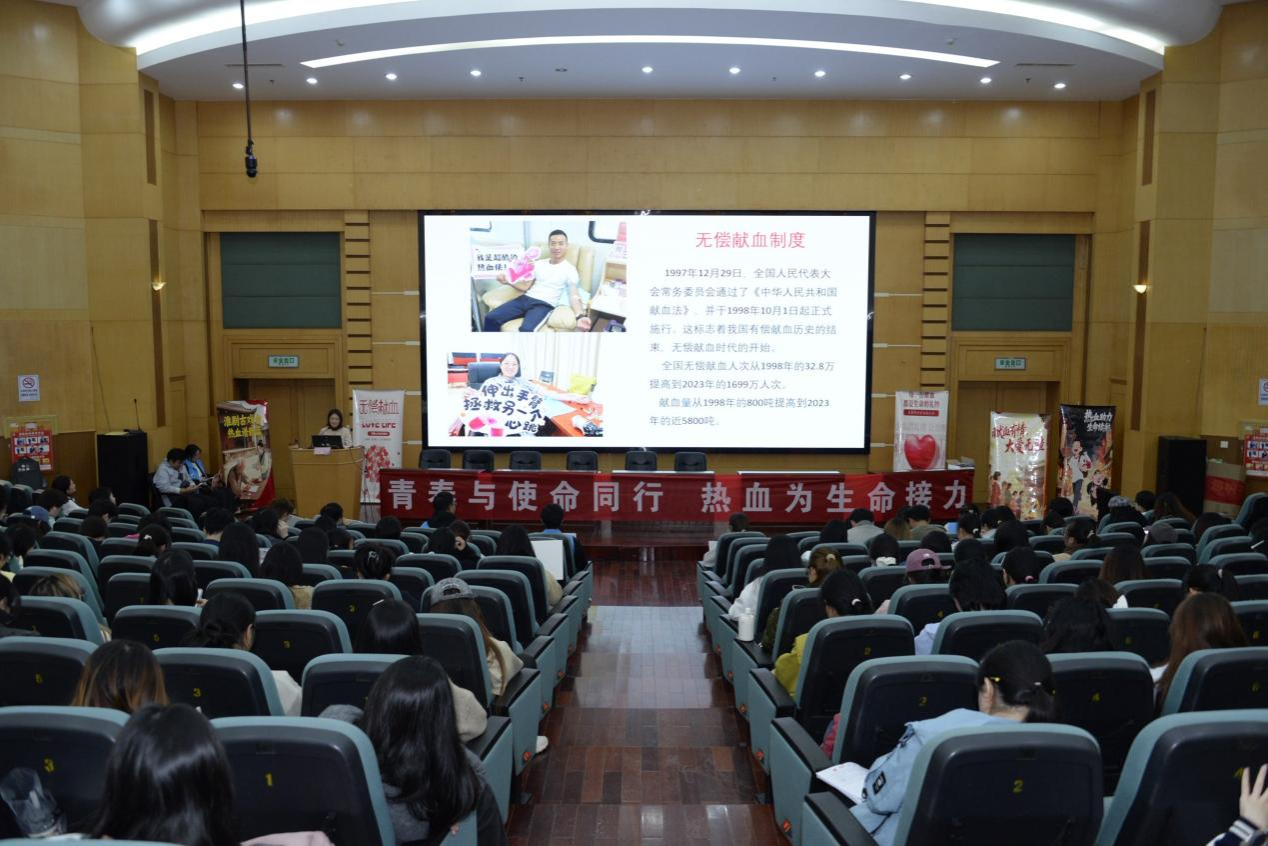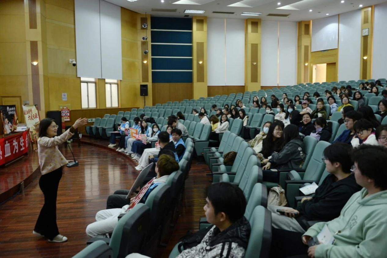 宣讲团成员、淮安市第二人民医院血液科护士长于友欢,用通俗的语言和真实的临床案例,将无偿献血具象为连接生命与希望的桥梁。她从血液在临床救治中不可替代的重要作用讲起,生动阐释了无偿献血的意义;又以生理知识为基础,清晰讲解了“献血无损健康”的科学原理,消除了同学们的顾虑。此外,于护士长还为同学们详细介绍了多项献血者关爱政策,让同学们在献爱心的同时,也能感受到社会的温暖回馈。
