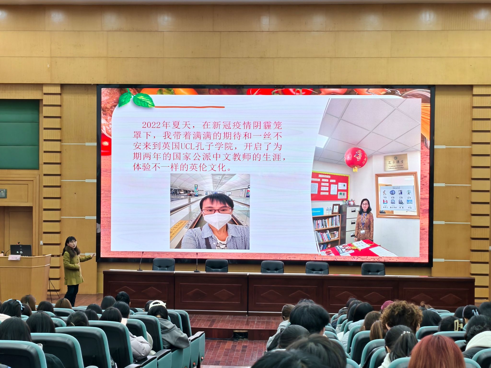 接下来,刘正霞副教授以自身英国孔子课堂公派任教经历,带来“国际中文教育是我们走向世界的敲门砖”专题分享。她结合赴英教学实践,讲述海外中文教学与中华文化传播的一线故事,阐释新时代青年讲好中国故事、传播中国声音的使命与价值。刘正霞强调,微专业课程安排灵活、管理规范、师资雄厚,知识体系与考证、考研、海外实践高度衔接,无论出国交流、升学深造还是修读学分,都是理想选择。
