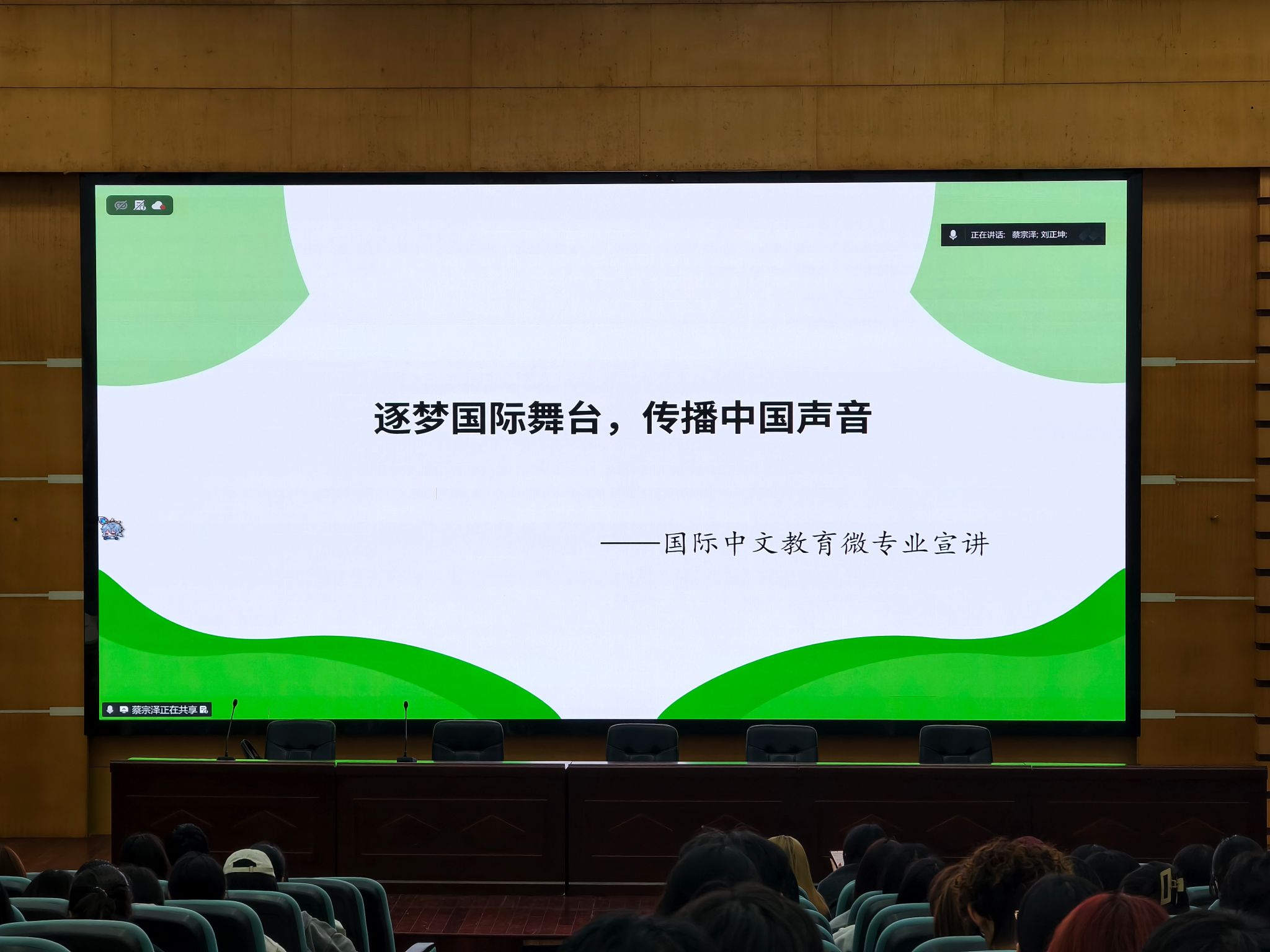 经验分享环节,2021级学生蔡宗泽通过线上连线,结合自身经历分享国际中文教育考研备考与语合中心志愿者项目申请经验。她详细介绍了考研科目、参考书目及复习规划,指出微专业是学生低成本探索专业方向、提前入门学习的优质路径;同时解读了语合中心志愿者招募条件、岗位分布、补贴政策及考研加分等事项,梳理面试全流程备考要点。互动环节,同学们围绕证书考试难度、英语口语备考、志愿者岗位等问题踊跃提问。