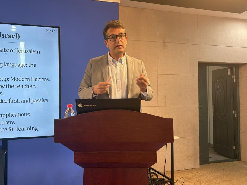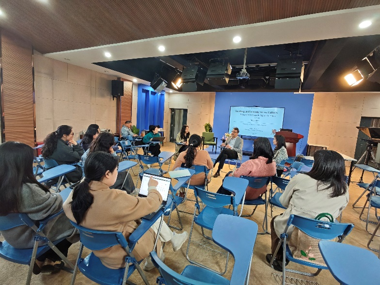 Alexis Balmont以《Teaching and Learning Across Cultures: Pedagogical Methods in Higher Education》为题,结合自身丰富的求学与任教经历,对比分析了法国、意大利、以色列等不同文化语境下的教育理念与模式,分享了其在跨文化宗教翻译、数字人文等领域的研究实践,以及现代教学技术应用、学术研究与出版等方面的经验,并鼓励学院师生打破文化壁垒,在多元教育实践中积极探索创新。