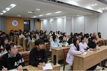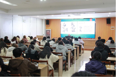 11月11日晚,设计艺术学院在萧湖校区报告厅举办2025年“发现设计十二讲”系列讲座之“海报设计中的书法元素漫谈”。此次讲座由学院程渤教授主讲,2025级同学通过线上线下相结合的方式参会。