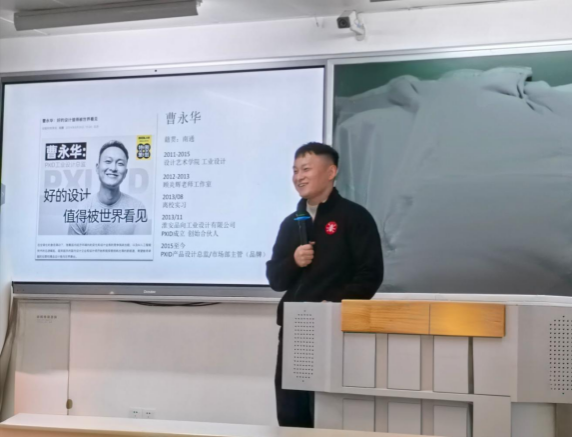 讲座伊始,曹永华结合自身职业成长经历,围绕“好的设计值得被世界看见”这一主题展开分享。他展示了2018-2025年间获得的众多设计奖项,包括红点设计奖、IF设计奖等国际知名奖项,以及国内各类设计大奖。通过一个个获奖作品案例,详细解析了设计从构思到落地的全过程,阐述了如何让设计作品具备打动人心的力量,进而走向世界舞台。