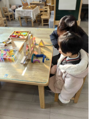 美工区里,彩纸、黏土、画笔成为孩子们的“魔法工具”,他们发挥天马行空的想象力,创作着花朵、小动物等充满童趣的作品,脸上满是认真与专注;益智区中,孩子们围坐在一起,专注地摆弄拼图、串珠子、数字配对教具,在游戏中锻炼逻辑思维与动手能力;绘本阅读区则格外安静,部分孩子自主挑选喜爱的绘本,或独自翻阅,或围在老师身边倾听故事,眼神中满是对世界的好奇与向往。