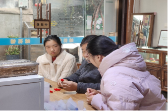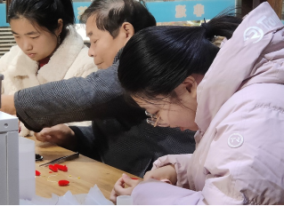拜访不仅是一次访谈,更是一场沉浸式的体验。钱凤池向师生们细致讲述了绒花的历史与工艺精髓,而两位同学则有幸在大师的亲手指导下,尝试了制作环节。从捻绕铜丝到修剪绒条,看似简单的步骤实则要求极大的耐心与精准的手上功夫。同学们在略显笨拙的实践中,真切感受到了每一朵绒花背后所承载的时间与心力,也领悟了何谓“工匠精神”。