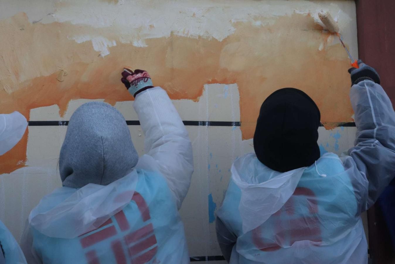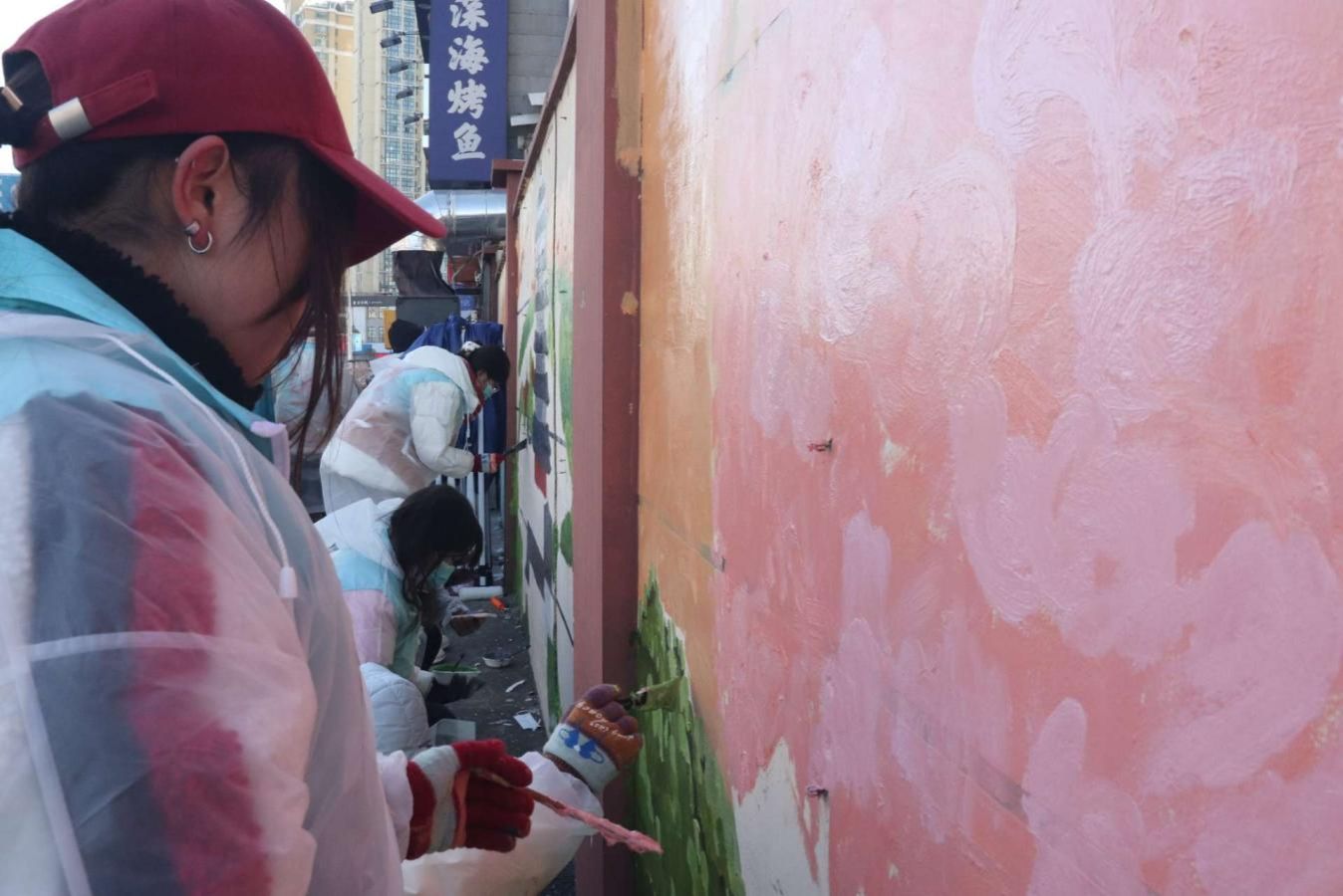 从清晨到日暮,志愿者们分工协作,原本斑驳单调的墙面,在笔触流转间焕发新生。
