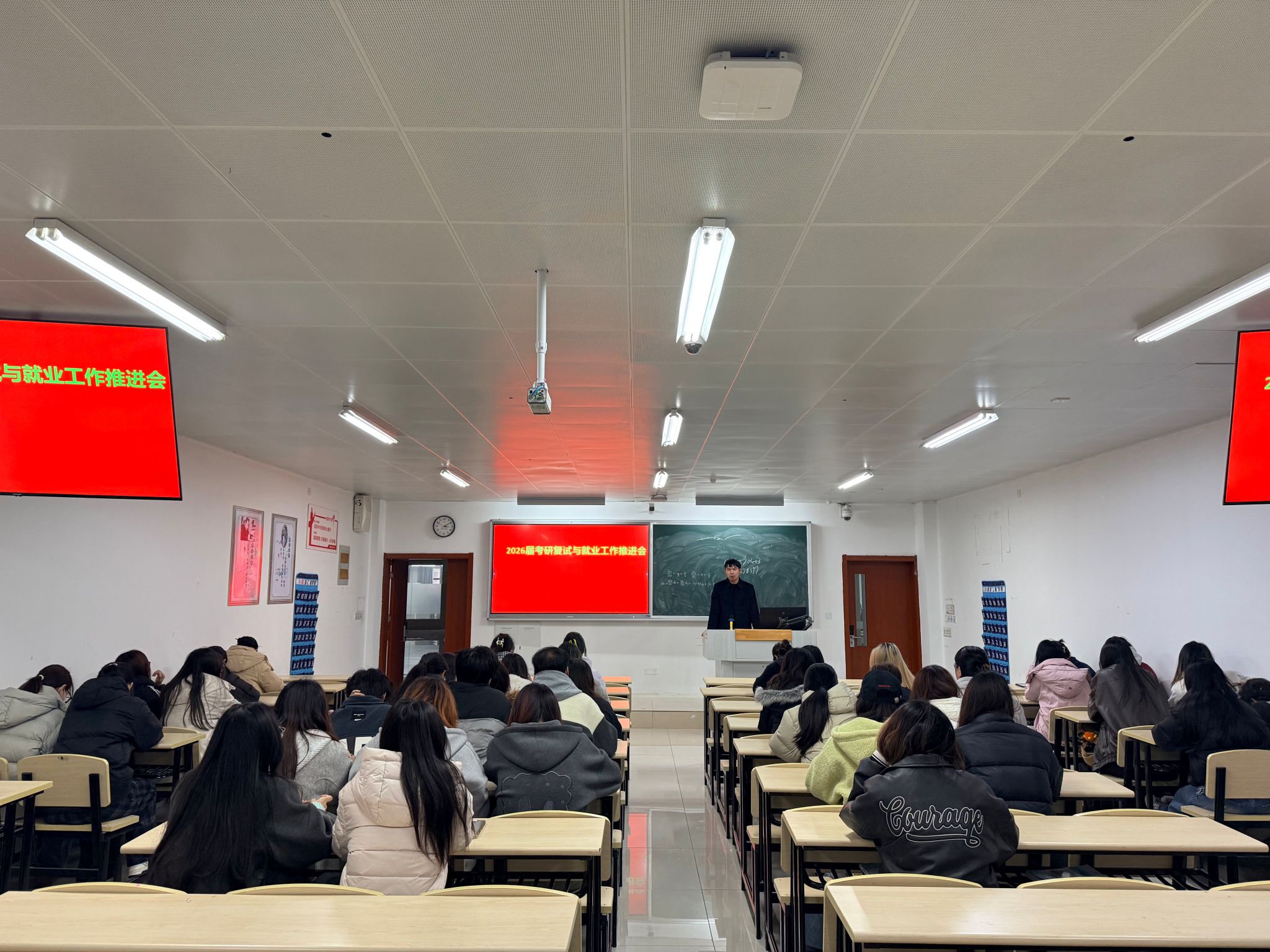 景有荣结合过往复试经验,向考研学子提醒今年复试调剂的时间安排、资格审查等事宜。他希望同学们放下焦虑、沉着自信,认真对待每一个环节,展现出学院学子的专业素养与精神风貌。他希望全体毕业生认清就业形势、调整就业预期,主动转变择业观念,既要积极对接优质企业岗位,也要主动关注基层就业、创新创业等就业渠道,敢于主动出击、积极求职。学院也将做好送岗、个性化就业指导、困难帮扶等工作,确保就业服务不漏一人、不留死角。在此之前学院对考研同学还开展了复试技巧辅导、心理调适、出国留学等帮扶工作。