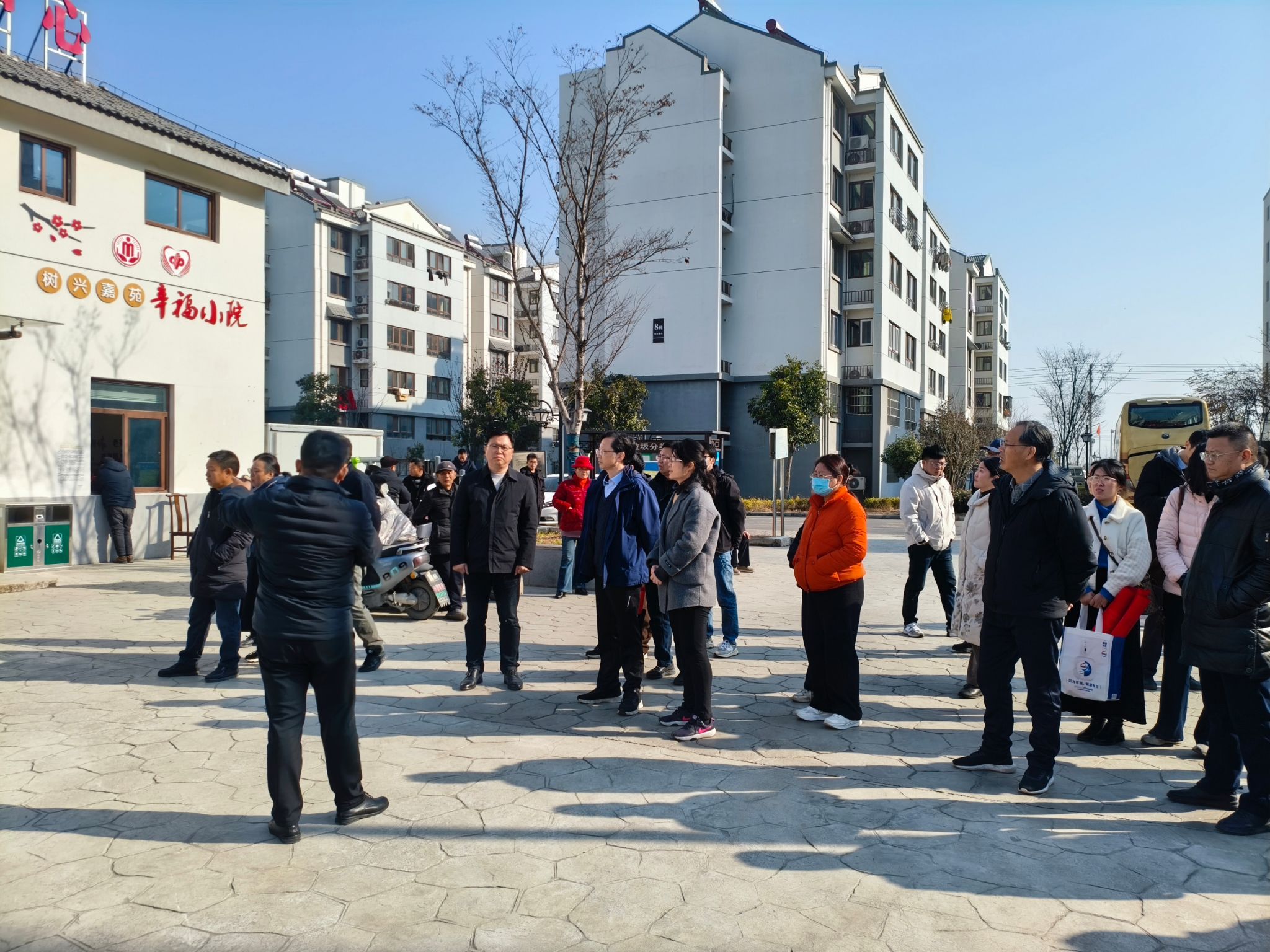 在三树镇树兴嘉苑社区,大家看到党群服务中心被打造成为集阅读、康复、观影等功能于一体的“幸福小院”。三树镇党委书记蔡春明介绍到,现在这个多功能的“幸福小院”是在上级部门和社区干部的广泛调研、大力推动下实现的,切实为居民生活提供了便利。小院前的广场上,一群老人坐花坛边晒着暖暖的阳光,脸上洋溢着满满的幸福。