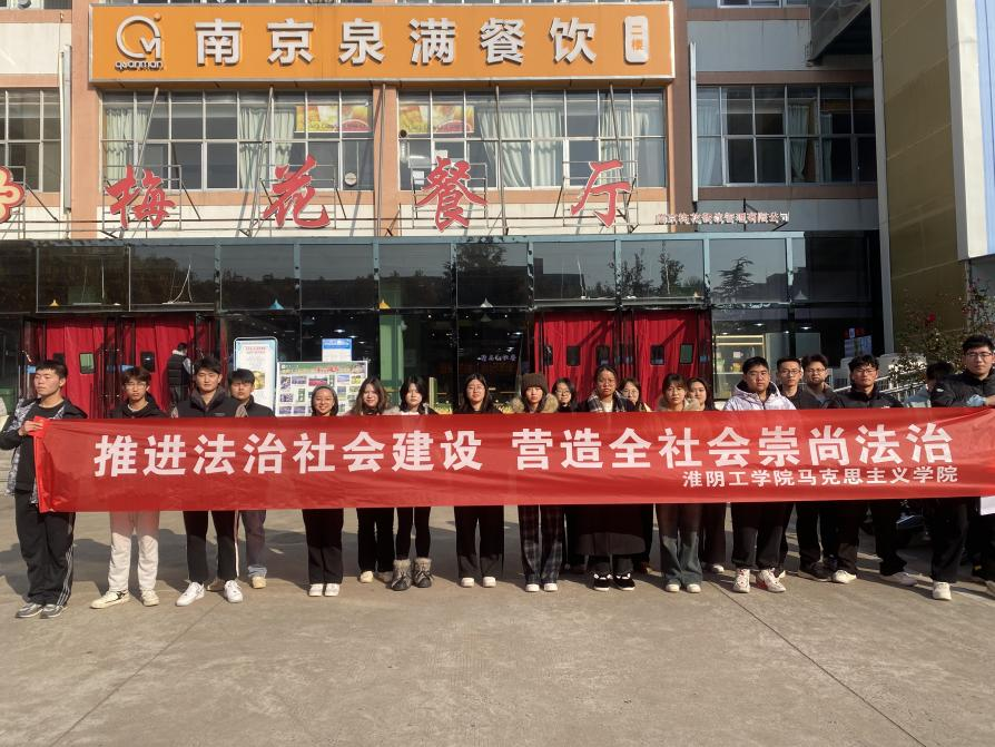 12月6日,马克思主义学院思想与道德法治教研室以“线上竞赛+线下签名”的组合形式,进一步掀起宪法学习热潮。在枚乘路校区第五、第八食堂门前,师生们拉起“推进法治社会建设 营造全社会崇尚法治良好环境”主题横幅,有序签名,郑重写下对法治建设的坚定承诺,笔尖落下的不仅是姓名,更是尊法学法守法用法的决心。