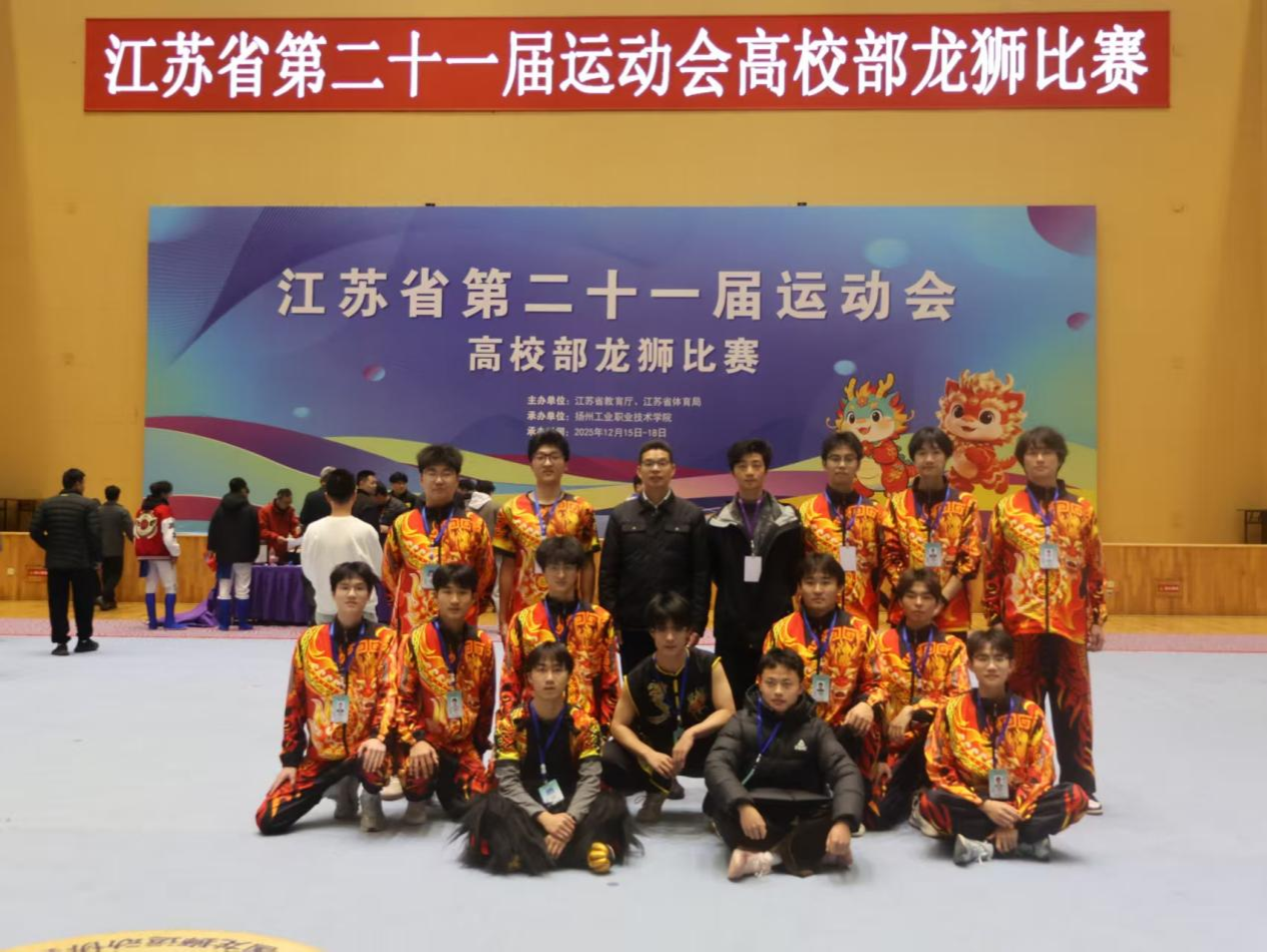 12月15日-18日,由江苏省教育厅、江苏省体育局主办的江苏省第二十一届运动会高校部龙狮比赛在扬州工业职业技术学院落下帷幕。我校由张思锋老师指导的龙狮队获得甲组北狮自选第五名、北狮竞速第六名、舞龙自选第六名,并取得总分第六名的好成绩。