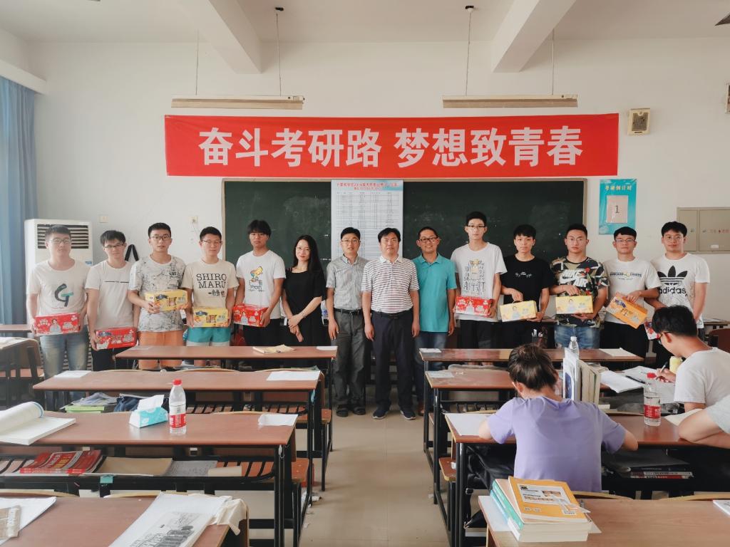 7月11日上午,计算机与软件工程学院党委书记汪伟、党委副书记孙凯军、16级辅导员在知行楼考研教室慰问2020届考研学生,并发放考研慰问品。 汪伟书记对考研学生提了四点希望,一是坚定信念,脚踏实地;二是讲究方法,确立目标;三是劳逸结合,注重效率;四是拼搏到底,注重过程。 考研一直是我院重视的工作之一,我院领导和老师全力支持考研的行动深深感动了我院考研学生,同学们表示非常感谢学院的关心,一定不辜负学校的期望,全力以赴备战2020年的研究生入学考试,以优异的成绩回报学校。