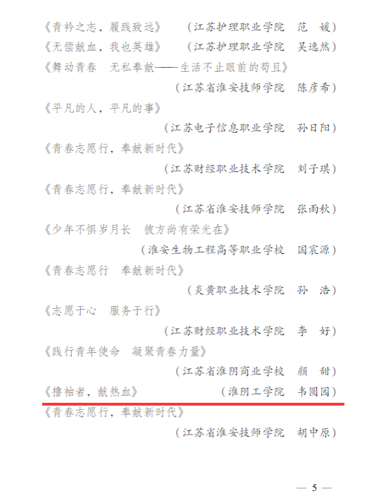 此次活动面向全市在淮高校青年团员,旨在鼓励同学们积极投身公益,开展志愿服务活动。自接到活动通知后,校团委积极筹备,认真实施,发动和组织学生们参加本次征文比赛。同学们勤奋笔耕,巧妙构思,用文字秀出真我风采,展现出了淮工学子的青春作为。