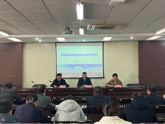 11月24日下午,我校举办“创新导向与成果导向的教学研究”报告会。教育部普通高校工科基础课程教学指导委员会副主任、中国高等教育学会工程教育专业委员会秘书长、浙江大学机器人研究院常务副院长陆国栋教授来我校作报告,报告由教务处处长王业琴主持。