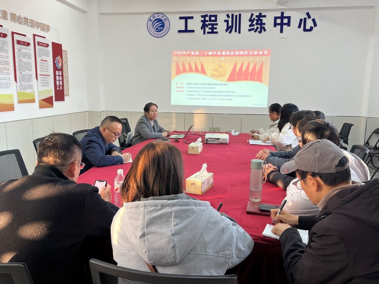 为深入学习贯彻党的二十届四中全会精神,11月27日下午,创新创业学院(工程训练中心)党委开展二十届四中全会精神宣讲活动。活动邀请马克思主义学院副院长张琳琳主讲,学院党委书记蒋青松主持活动,全体教职工党员参加活动。