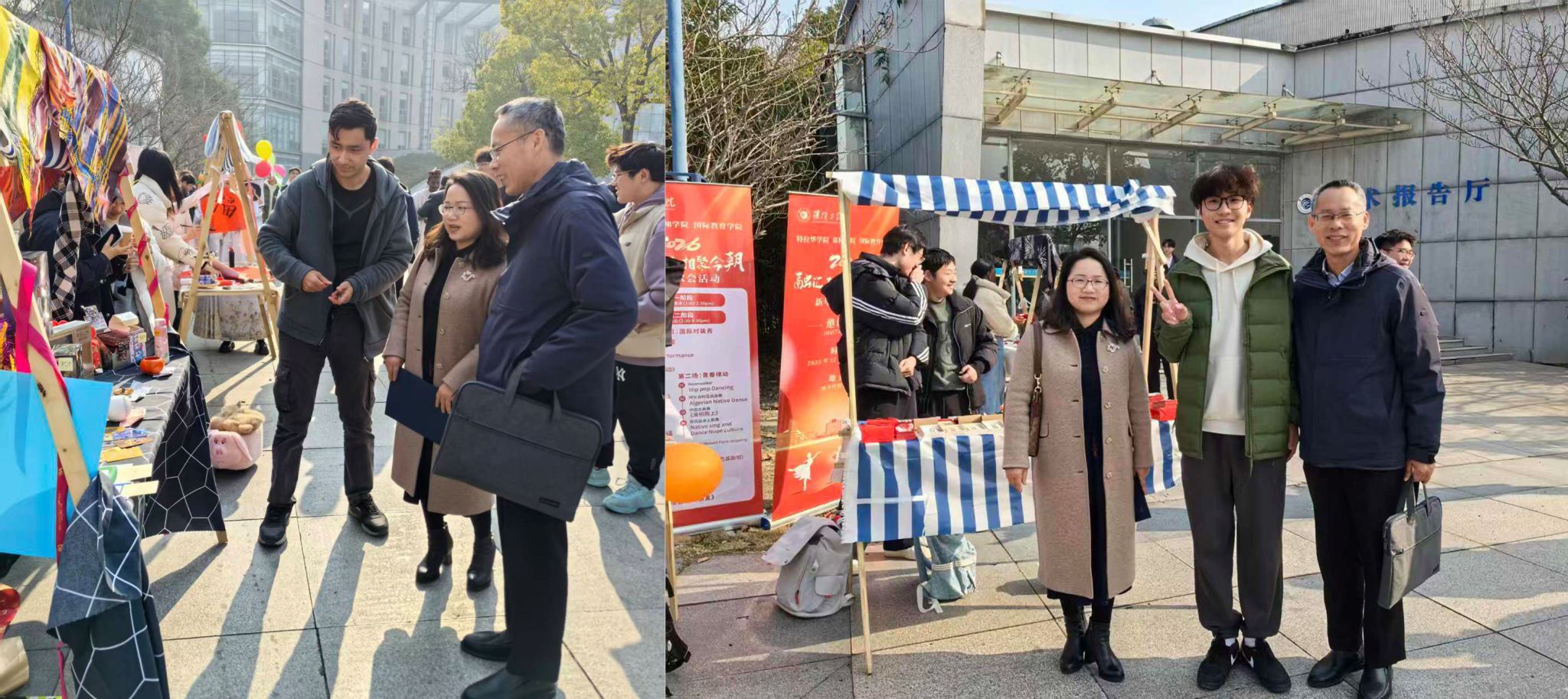 下午一时许,国际文化集市在图书馆报告厅一侧热闹开市,汇集了来自全球各地的特色手作、民俗展示与创意作品,中外学子在这里驻足交流、互赏文化。