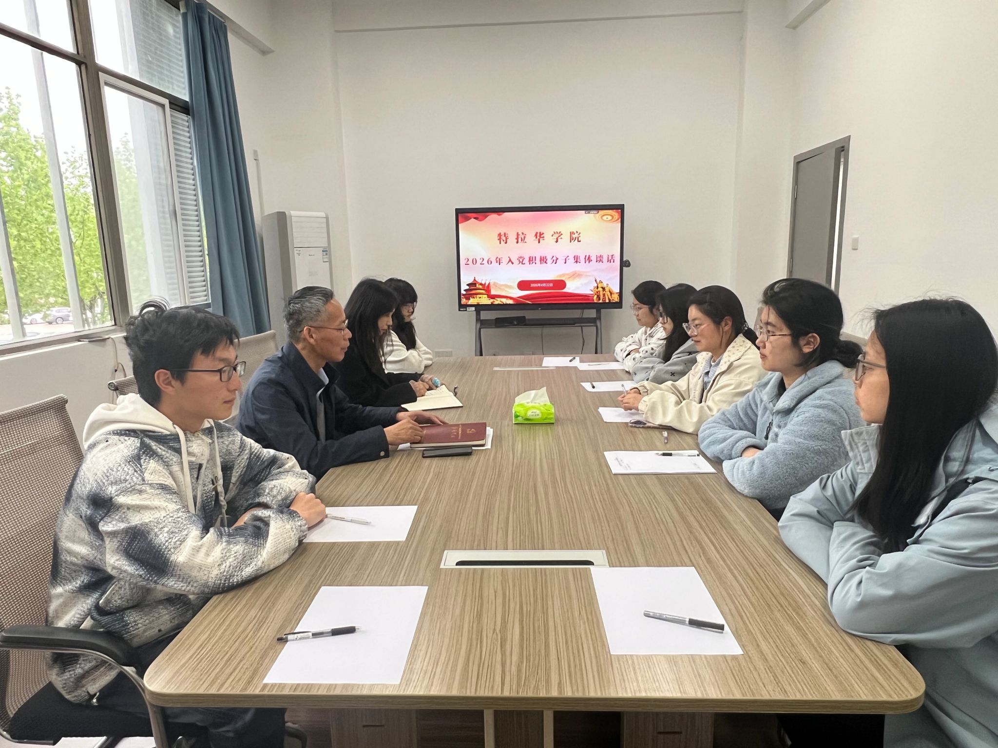 4月22日特拉华学院在21211会议室开展2026年上半年入党积极分子集体谈话。学院党委书记张宇林、副书记冯云平以及学院首批11名被确定为入党积极分子的同学参加了本次活动。